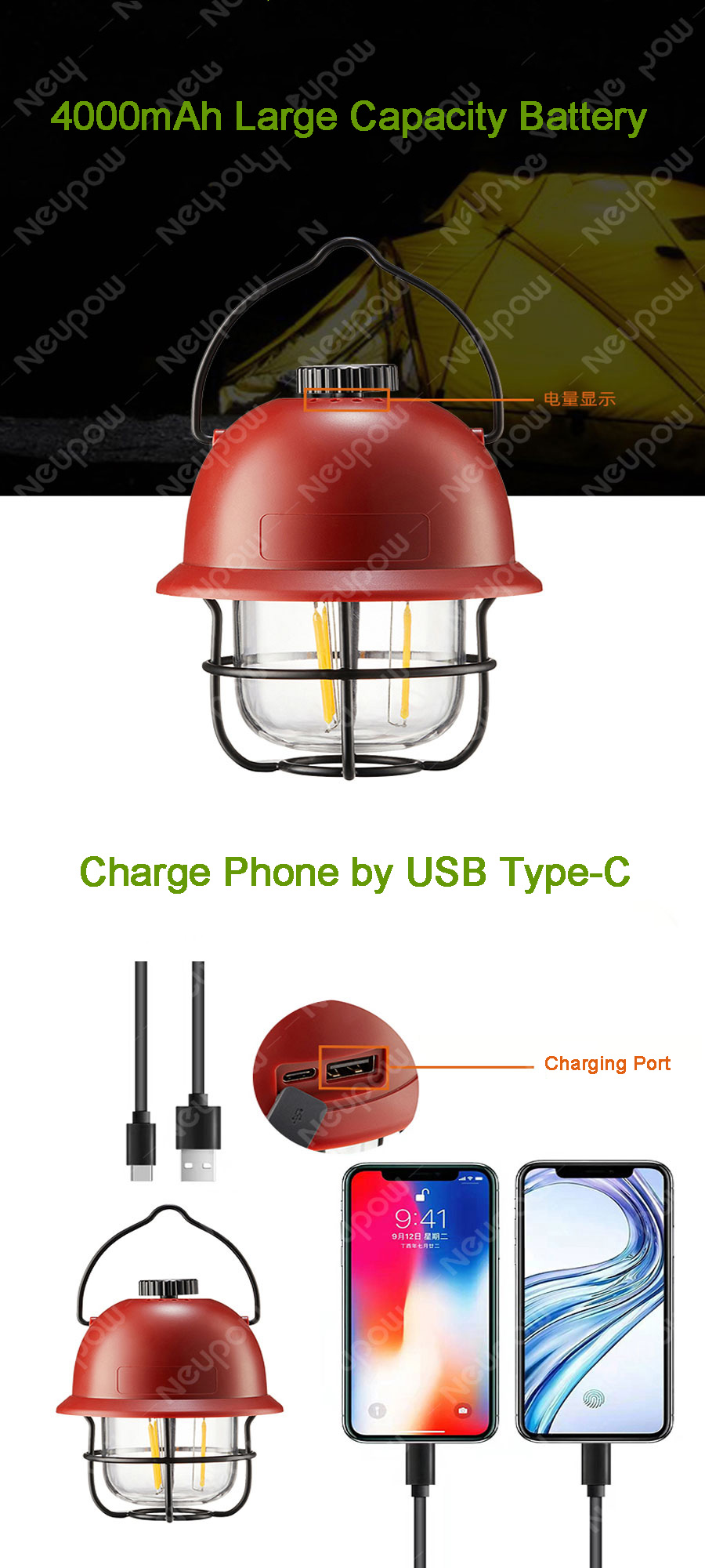 【Bank Boleh Dicas semula & Kuasa】Dengan bateri boleh dicas semula terbina dalam, selain pencahayaan, lampu perkhemahan retro juga boleh berfungsi sebagai bank kuasa untuk telefon pintar atau peranti mudah alih semasa kecemasan.